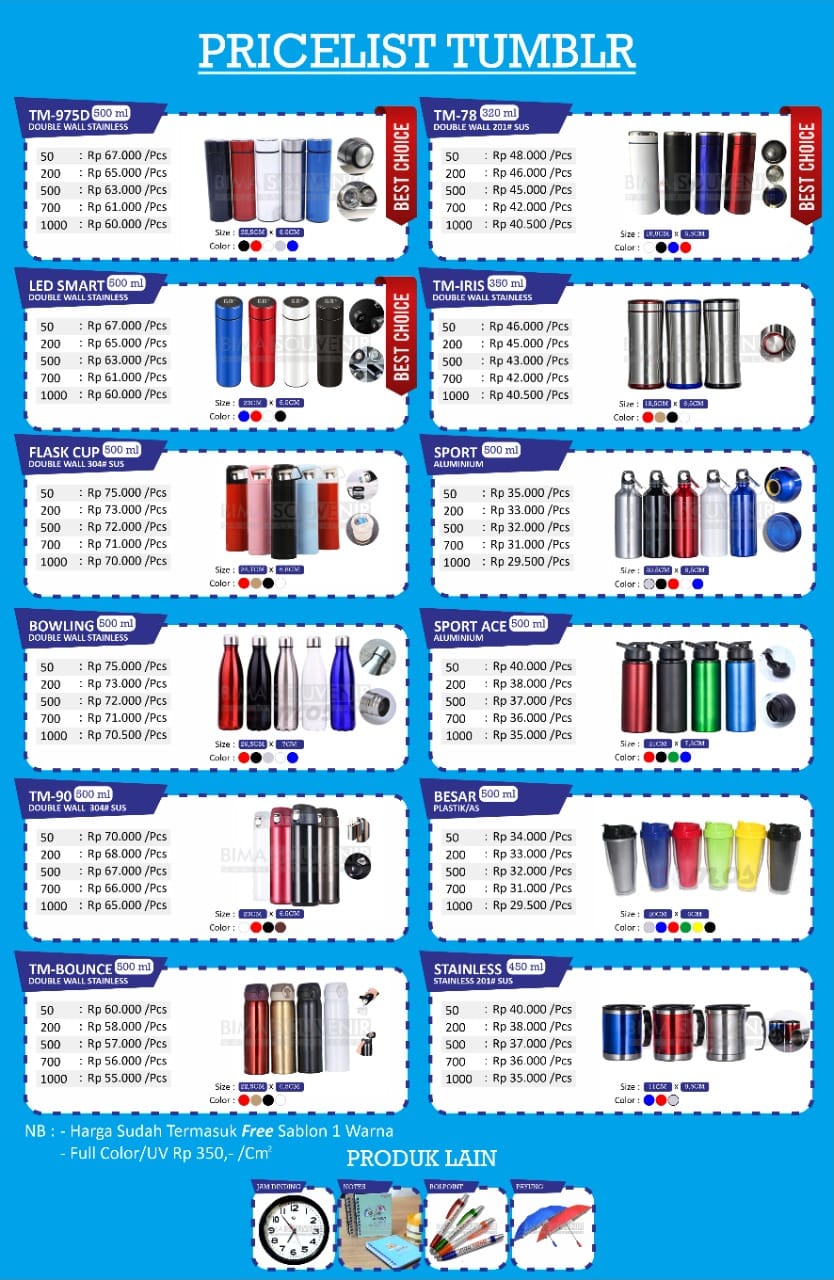 Jika ingin tahu harga tumbler bisa lihat di gambar berikut ini: